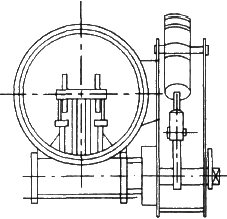 ??? 受到結(jié)構(gòu)的限制不能制作體積較大的蝶閥,口徑一般大到DN500mm。另一種與其結(jié)構(gòu)相似的閥門(mén)為四連桿蝶閥(如圖2所示),口徑可以做到DN1400mm以上。其工作原理與翻板蝶閥差不多:通過(guò)擺動(dòng)氣缸進(jìn)氣推動(dòng)連桿,連桿作用于翻動(dòng)閥瓣,閥瓣靠與閥體上的密封座起密封作用。由于四連桿在閥體里,經(jīng)氣流沖刷,容易生銹或卡阻,并占去流道里的空間,使流通受阻。由于閥座也是突出于流道,減少了流通面積。受到結(jié)構(gòu)的限制,工作介質(zhì)只能單向流動(dòng)。由于氣缸作用較小,大口徑閥門(mén)開(kāi)啟時(shí)必須把背壓放空。